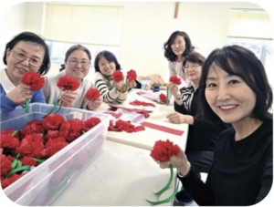 지난 4월 15일 레지오 마리애 천사들의 모후 쁘레시디움 (단장 김정선) 단원들이 지난해에 이어 올해에도 아시아 패밀리스(대표 송화강)에 색종이로 만든 카네